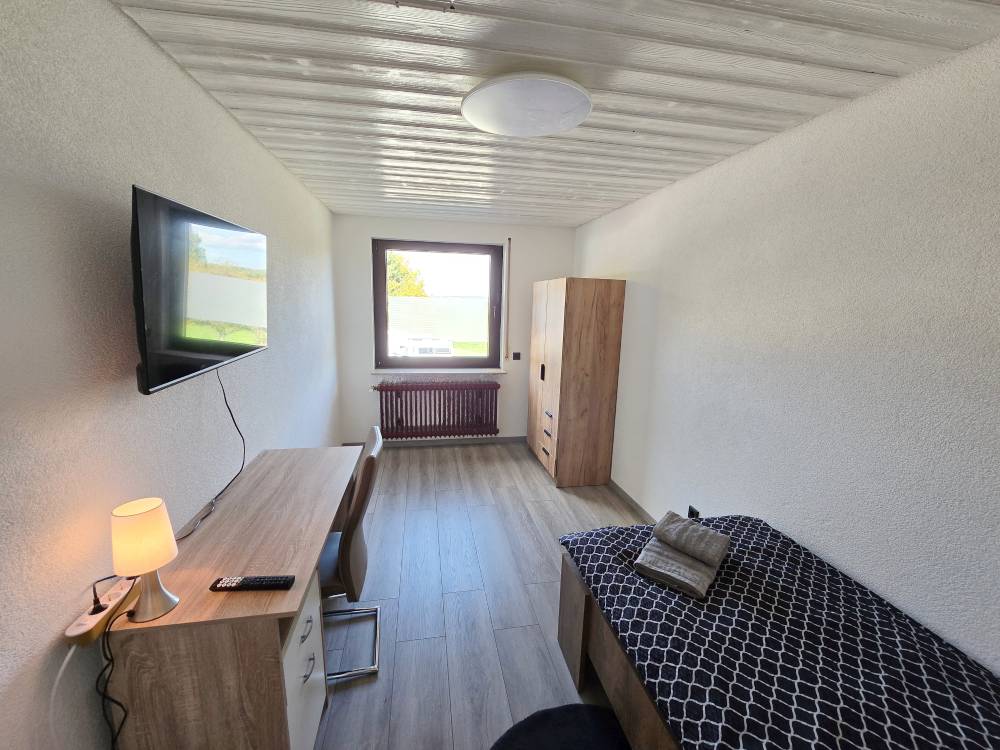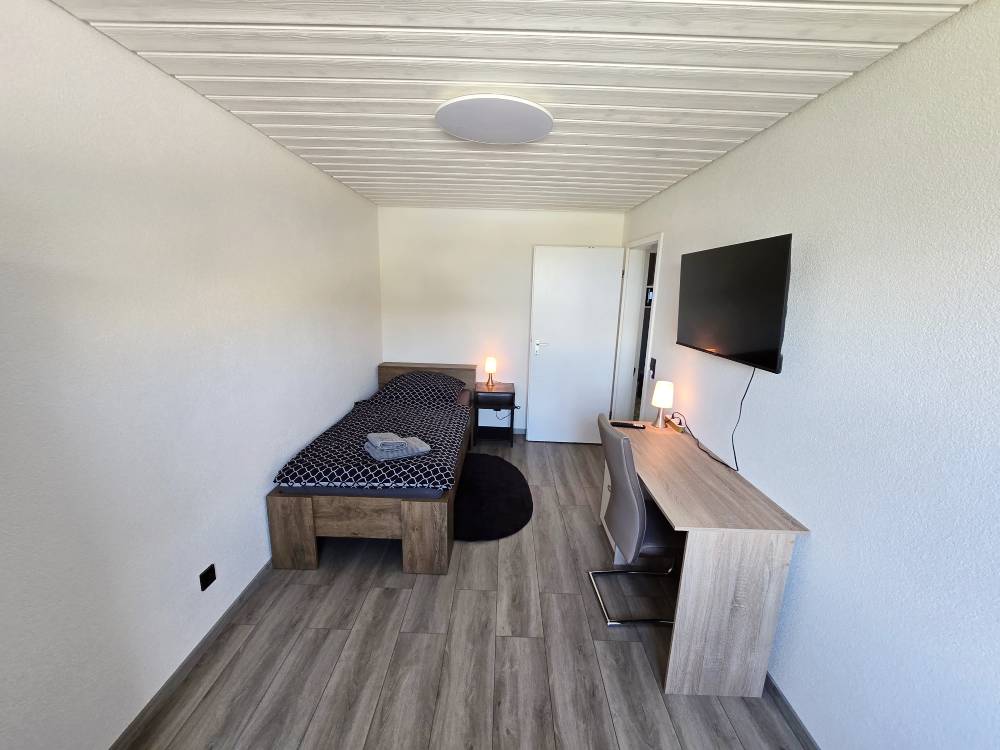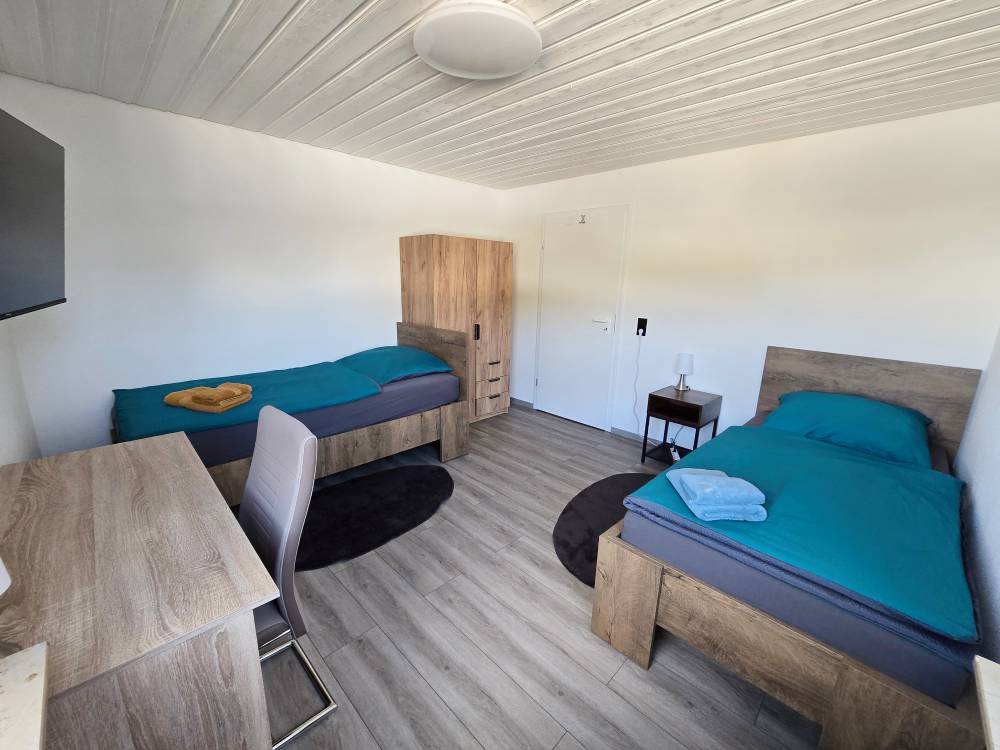 Helle 3-Zimmerwohnung (ca. 70 m²) mit 2 Einzelzimmer mit Einzelbett, Schrank, Schreibtisch und SMART-TV, Schlafzimmer mit 2 Einzelbetten, Schran, Schreibtisch u. SMART-TV, gemütliche Wohnküche mit Eckbank, Bad m. DU/WC, sep.WC, Haushaltsraum m. Waschmaschine/Trockner,. Terrasse (WLAN),