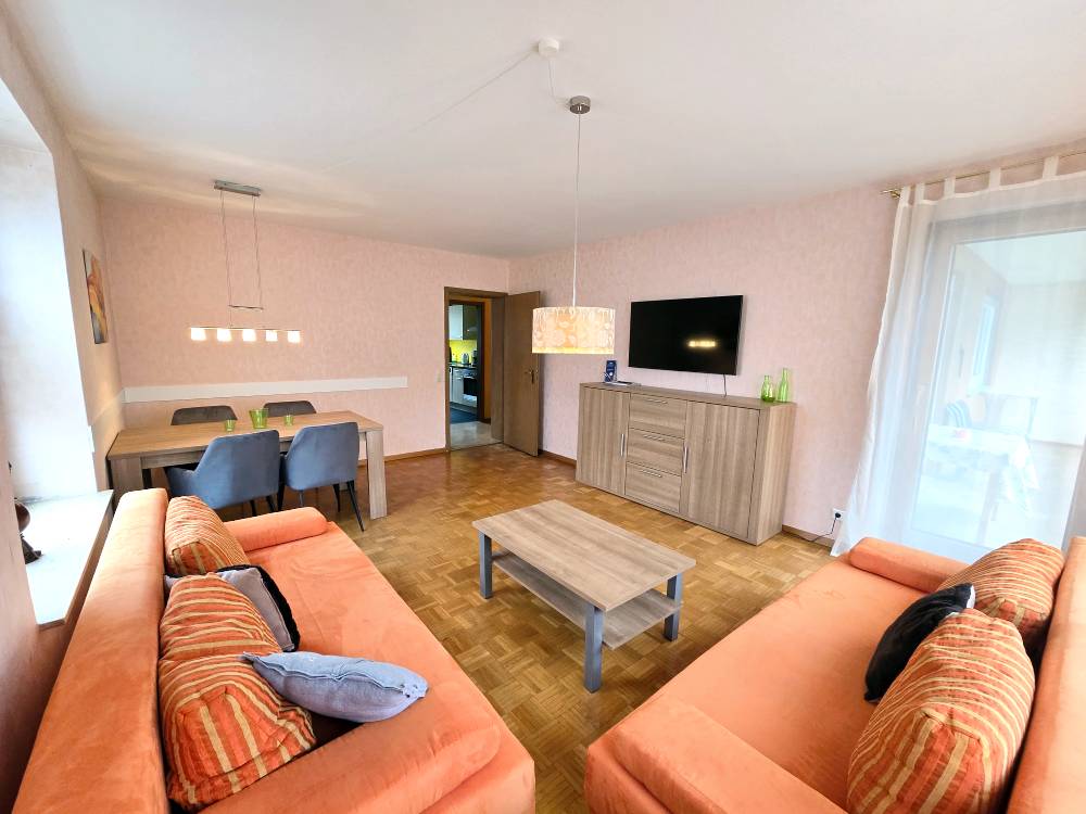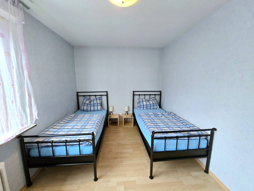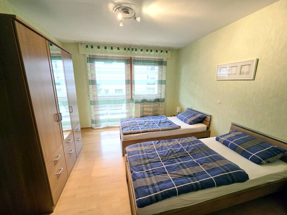 In Ostfildern-Nellingen haben wir eine neue, geräumige 3-Zimmerwohnung mit großem Balkon, die bis zu 6 Personen Platz bietet. Die Gästewohnung ist ausgestattet mit 2 Schlafzimmern mit je 2 Einzelbetten und Schrank und einem Wohnzimmer mit 2 Schlafsofas, Kabel-TV sowie einem schönen Esstisch mit Stühlen. Eine separate Küche sowie ein Bad mit Badewanne und Dusche steht den Gästen in dieser Unterkunft ebenfalls zur Verfügung. Das WC ist separat.